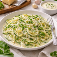 This Zucchini Noodle Alfredo is a perfect example of how a low-lectin approach doesn’t mean giving up comfort foods. It means rethinking them. By swapping traditional wheat pasta for fresh zucchini noodles and building a rich, creamy sauce without flour or high-lectin ingredients, this recipe keeps the indulgent texture and flavor you expect while aligning with a more digestion-friendly, lectin-aware lifestyle. It’s a simple, satisfying way to enjoy a classic dish with a modern, thoughtful twist rooted in both culinary tradition and evolving nutrition science.